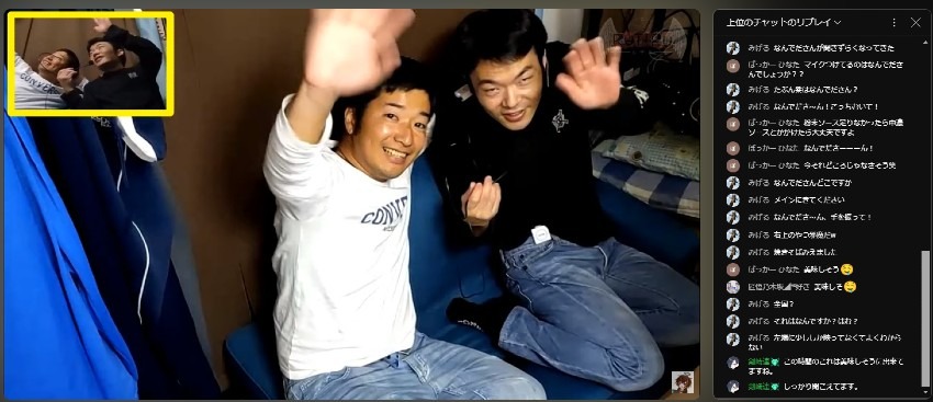 調理終了後は、食べるスペースがなかったため狭い場所で学生の頃のトークを挟みつつ気がつけば23時突破してしまい、最後はカメラ目線に手を降って番組終了。