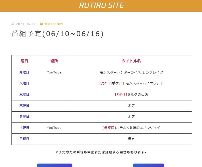 「未定」の部分はまだ未定のため放送あるかも知れないし、ないかも知れない。