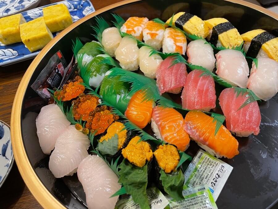 糸島の道の駅みたいなところでお寿司買ってもらい夜ご飯でいただきました🙏