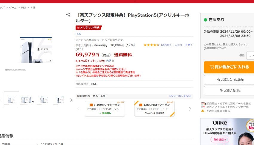 「PS5今少しだけ安くなってますよ(1万円程度)」