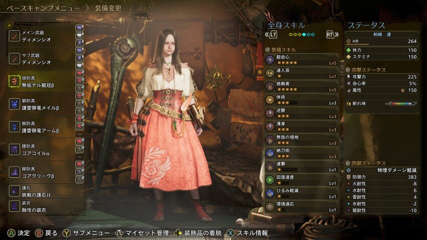 この防具の特徴はゴアマガラ4部位ほどには及びませんが、ぼちぼち火力寄りです。