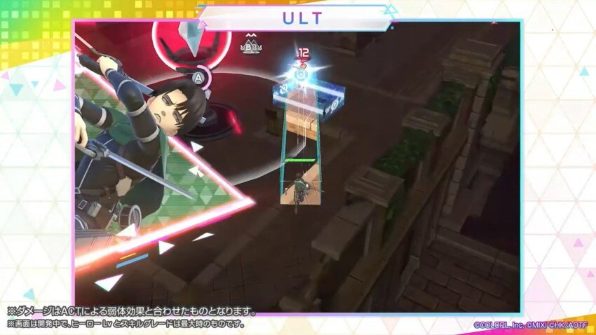 リヴァイは、ACTスキルで小さい円形のコアヒットありの範囲を結構遠くまで引き延ばすことが出来て、それに敵が当たるとカット率とスロウに掛かります。