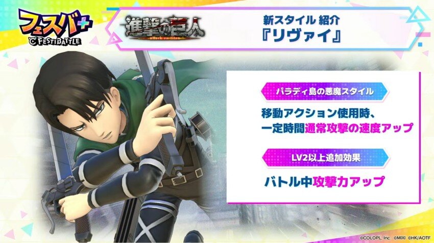 なんと、進撃の巨人よりリヴァイ兵長が参戦が決定したみたいです。