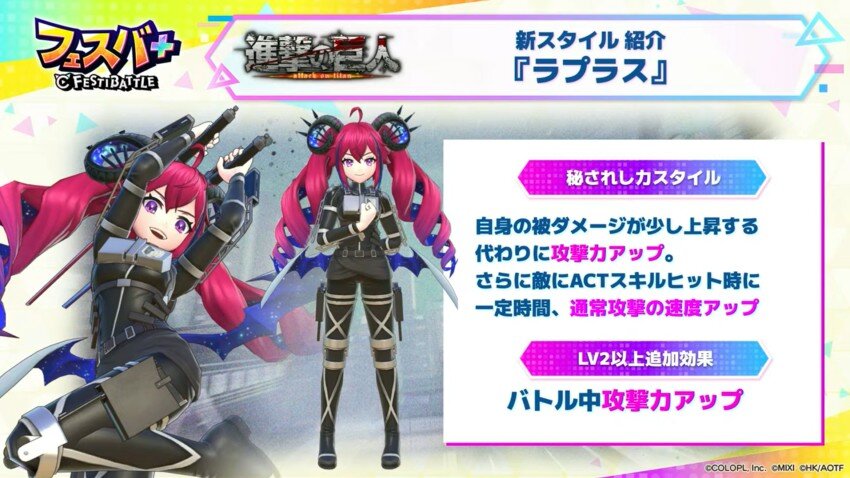 他には赤髪のヒーローとラプラスの調査兵団のスタイルが登場するようです。
