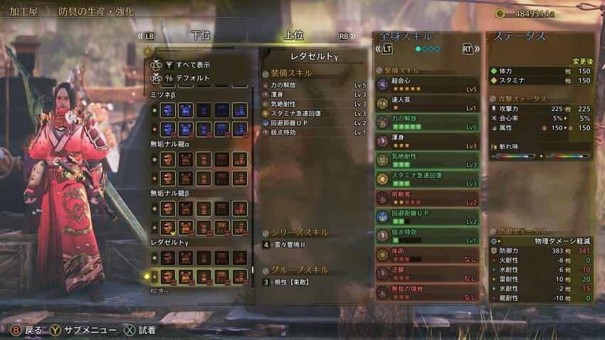 レダゼルトコイルγ スロなし 装備スキル:力の解放2 渾身2