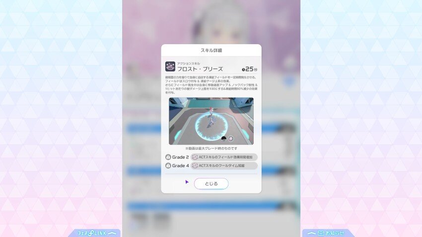 コアヒットに当てる事で、凍結状態を付与するULTスキル。ACTスキルで凍結している敵に対して、1.5倍の威力で攻撃を行い、更に凍結を上に付与すると言う使われ方をされる優秀なスキルです。
